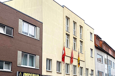 Etwas versteckt und eher unscheinbar liegt die DITIB-Zentralmoschee Münster am Bremer Platz. Und auch wenn sie für Passant:innen mit ihrer silbrig glänzende Kuppel auf einem Turmaufbau in Form eines Minaretts von außen kaum sichtbar ist, verfügt sie im Inneren des mehrgeschossigen Gebäudes über einen Betsaal mit der typischen Ausstattung und Dekoration und über weitere Gemeinde- und Schulungsräume.